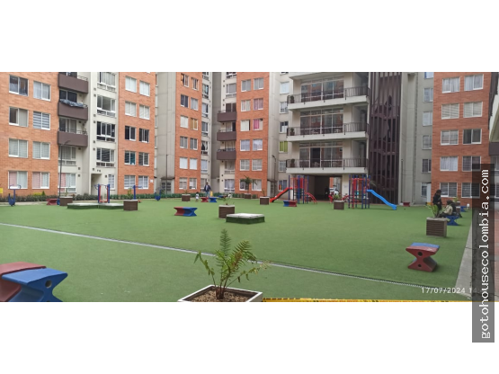 Apartamento en venta de 48 m2, con vista interior, ubicado en un 10mo piso (Torre 10, Apto 907), acceso por ascensor. Consta de 3 habitaciones, 1 baño, sala comedor, cocina integral y zona de lavandería. Tiene piso laminado en habitaciones hall y piso cerámico en baño y cocina. El conjunto cuenta con salón social, parque infantil, zona BBQ y vigilancia privada las 24 horas. Cerca a centro comercial Viva; cerca a almacenes de cadena Éxito, Tienda D1, Tienda Ara, Colsubsidio; cerca a colegio Distrital Carlo Federici; cerca a paraderos del SITP; Vías de acceso por la avenida calle 13 y carrera 116A.